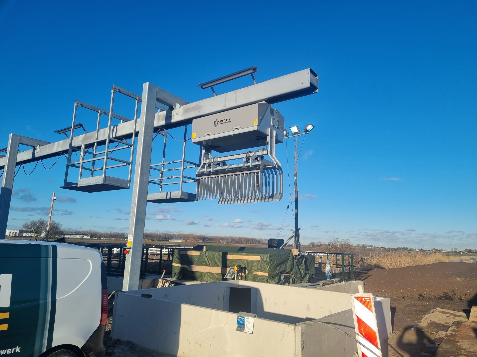 Onlangs deze reiniger geplaatst bij gemaal; Achter Emer. Speciale aan deze reiniger was dat deze van een bocht is voorzien.